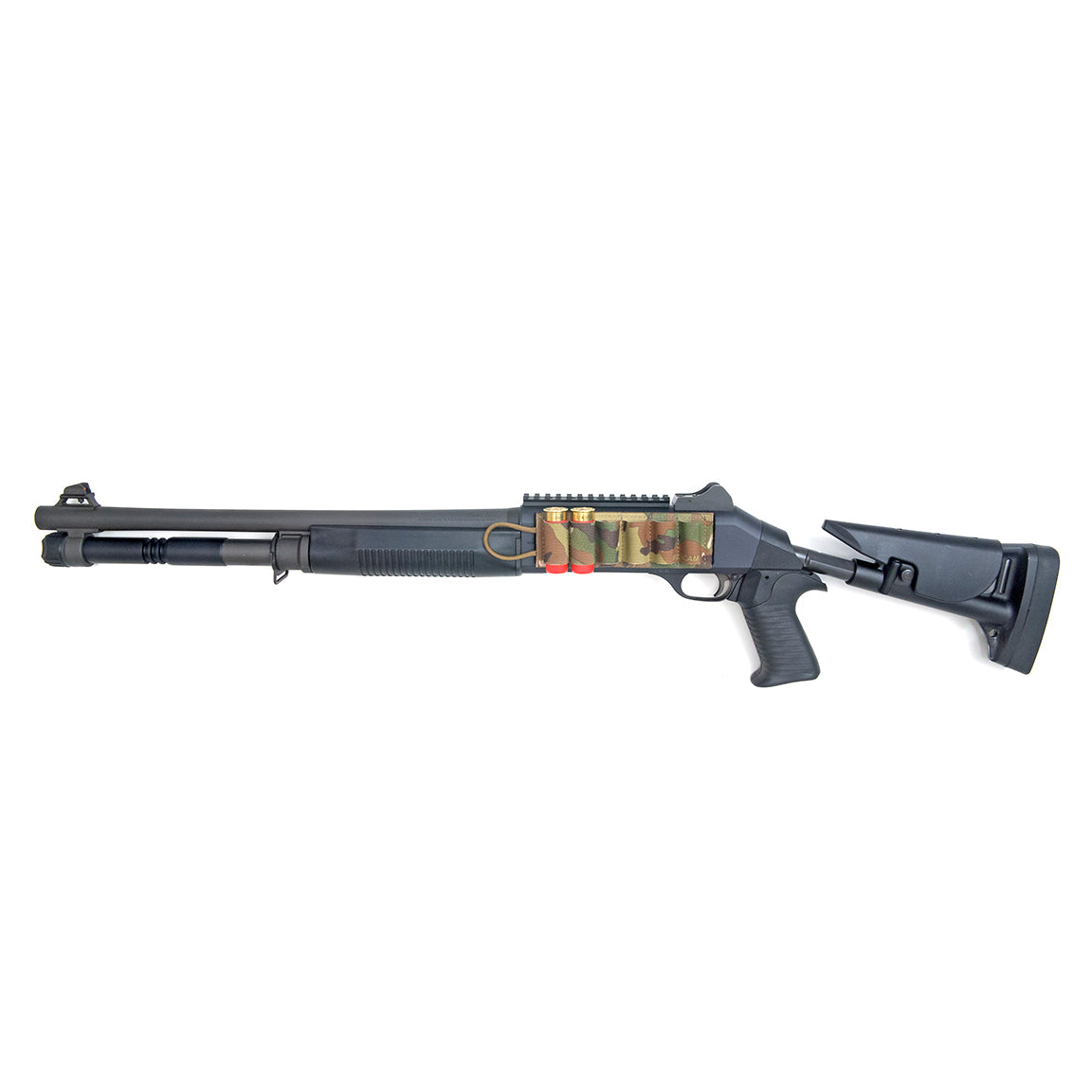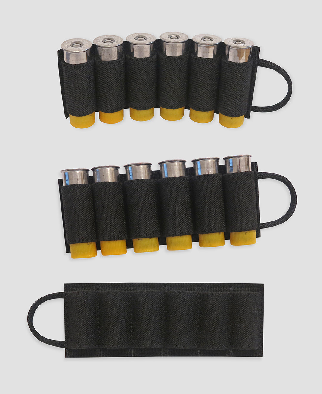 Securely carry shotgun shells in a rapidly deployable manner. Made from Mil Spec elastic webbing and backed with hook Velcro®. Simple and fast. As you reload the shotgun, tear off the empty card and apply a new one for quick and rapid deployment of each Detachable Shotgun Card. Paracord pull tab for ease of use.