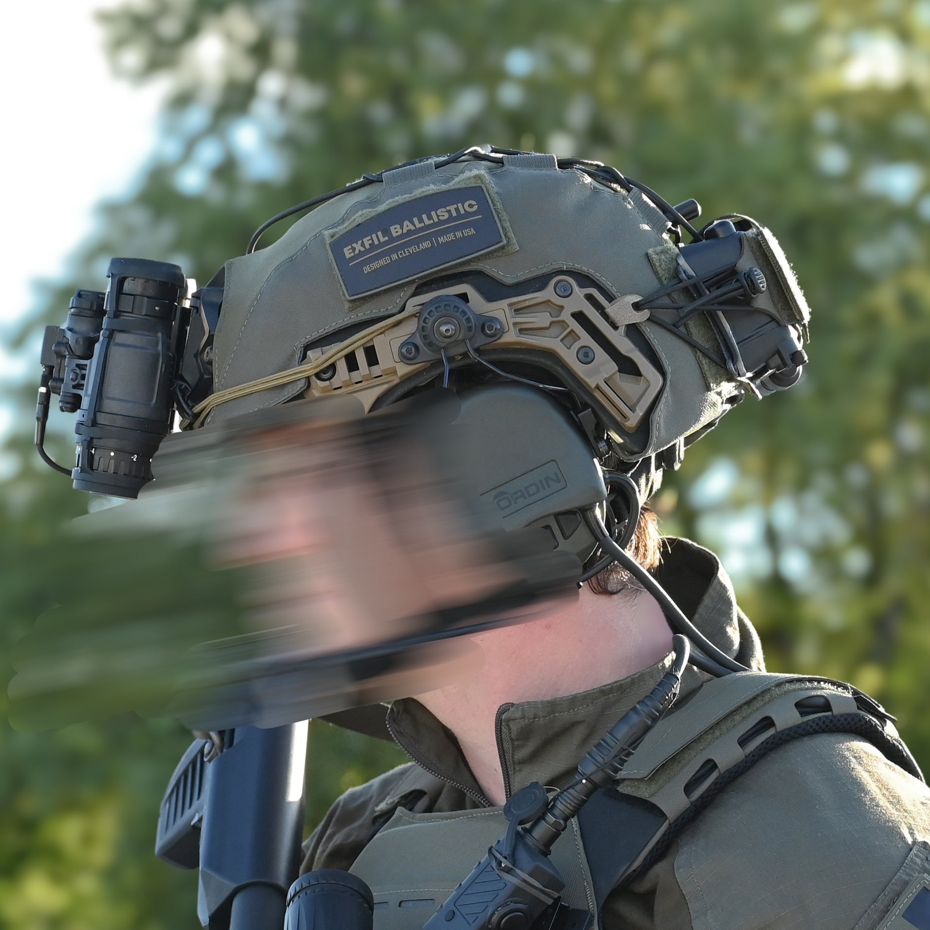 Constructed from 500 Denier Nylon Cordura®, colour matched laminate, 3D spacer mesh, and a 6.5mm closed cell high impact neoprene foam insert. Velcro fold over tabs open up to allow for coms and hydration bladder routing.