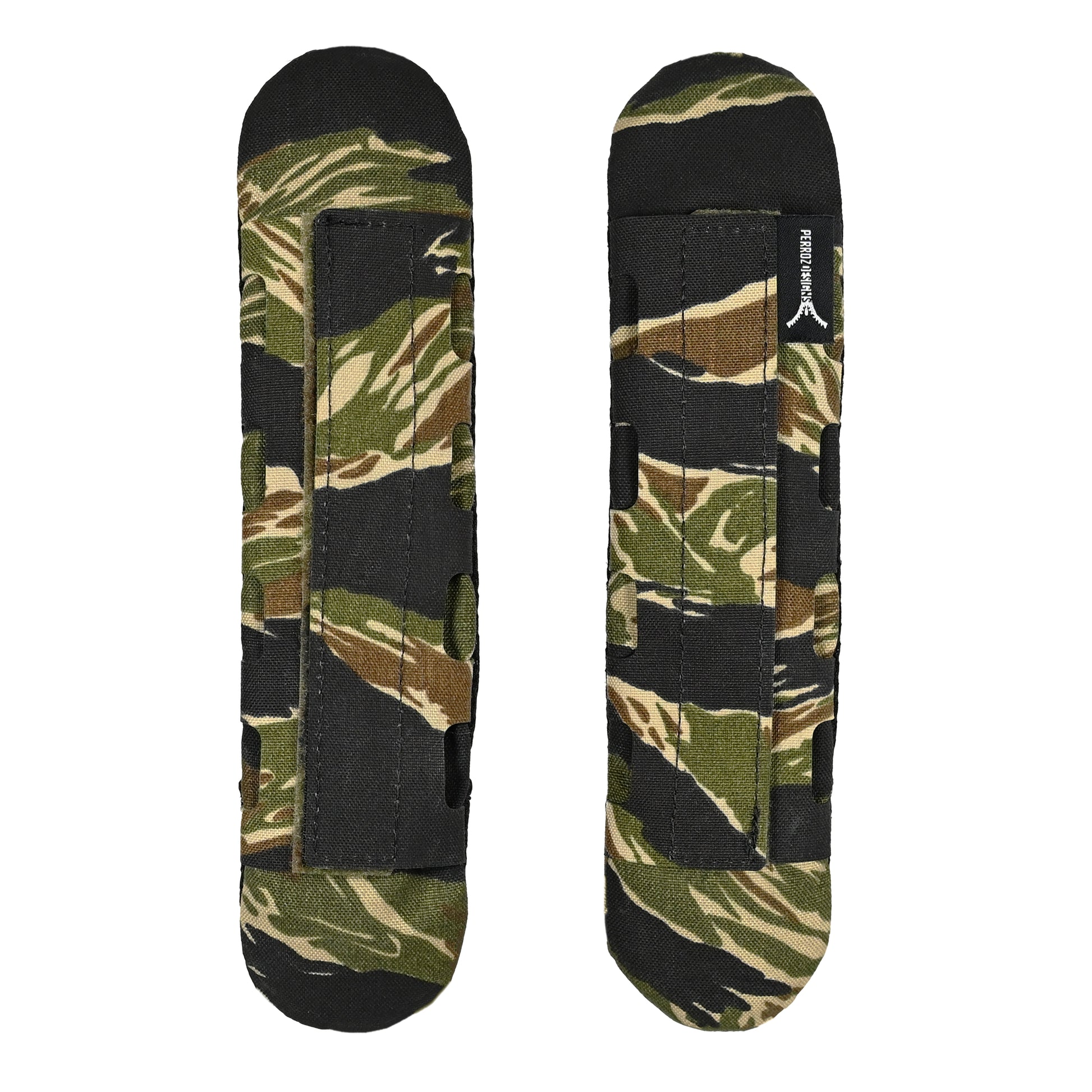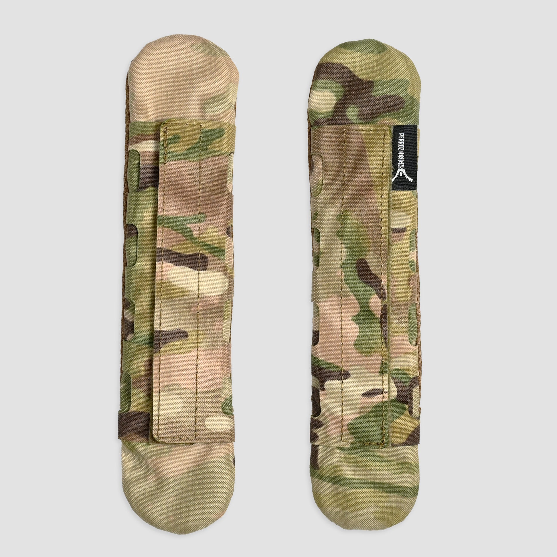 Each Shoulder Pad uses matching coloured Velcro®, including woven printed loop for use with all patterns of MultiCam, US Woodland M81 and Tiger Stripes.
