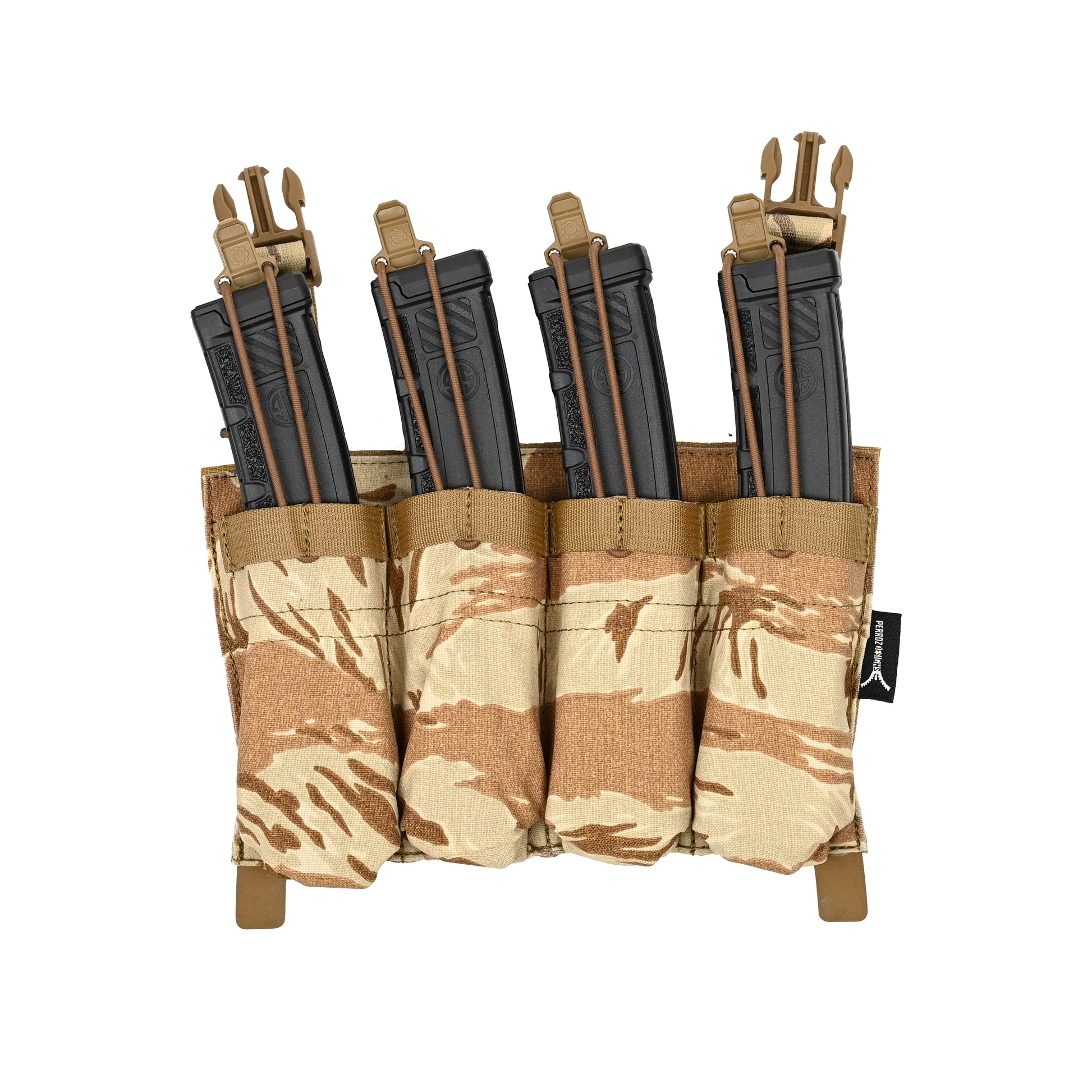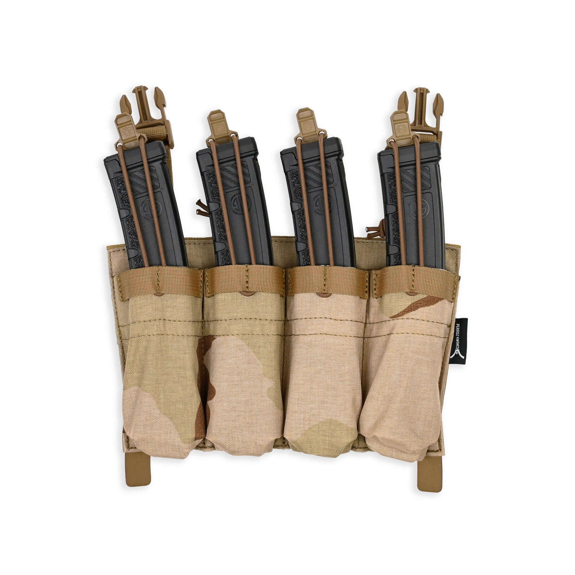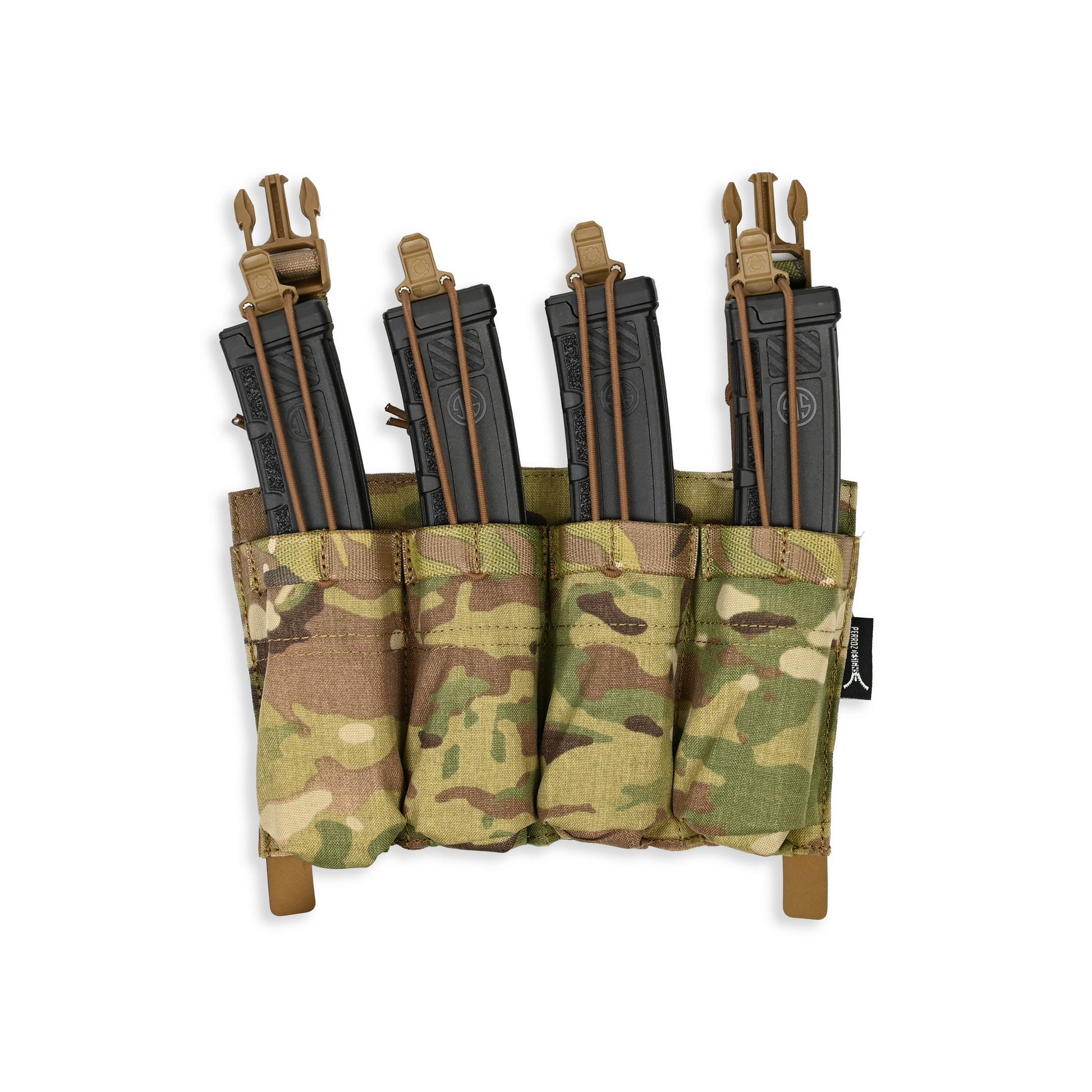Secure and fast attachment via hooked Velcro® back and buckles. Clips directly into ITW QASM female buckles - height adjustable utilizing Velcro® One-Wrap. Magazines individually retained by 1/8th inch bungee cord and synthetic rubber S&S Precision® pull tabs which provide a non-slip ergonomic grip.